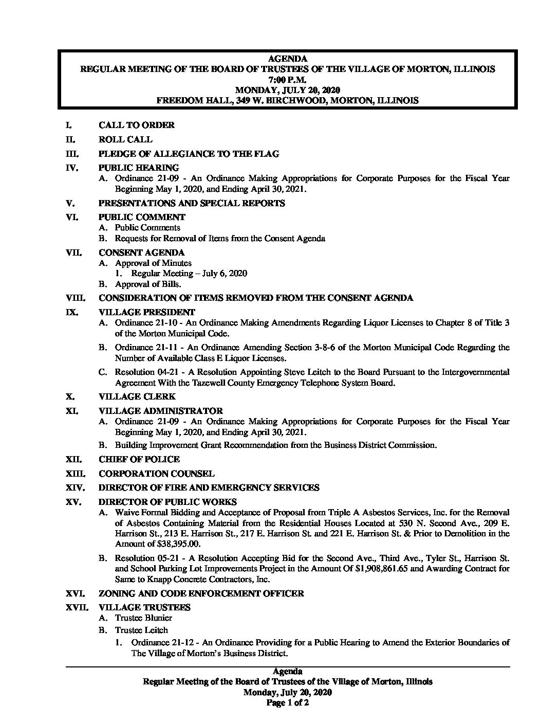 (309) 266-5361 Village Hall - 120 North Main Street Morton, Illinois 61550